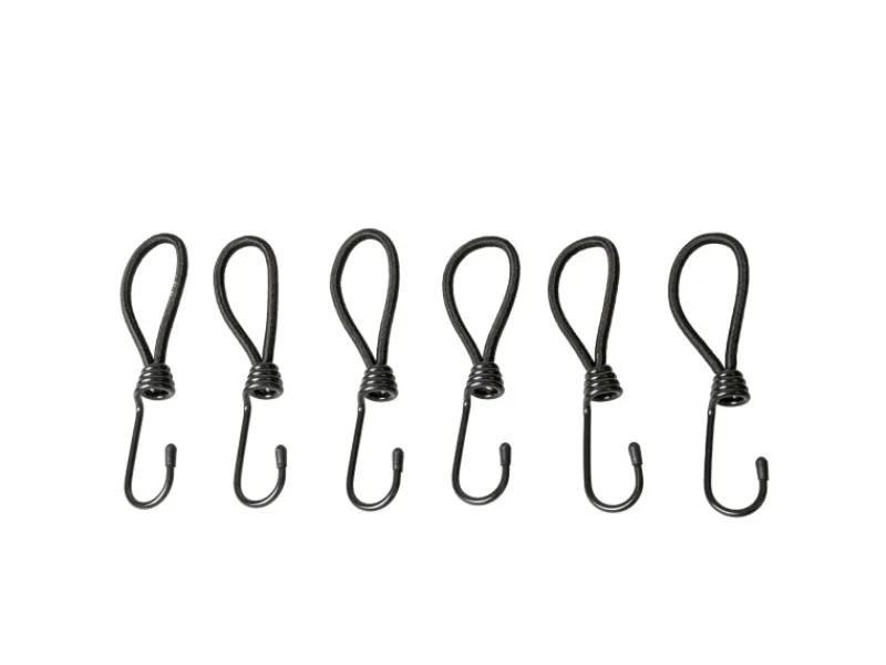 Die Anbringung gelingt sekundenschnell. Zuerst wird die Schlinge einfach in die Öse des Zeltes oder der Plane eingefädelt. Danach wird der Haken durch die Schlinge geführt und anschließend festgezogen. Eine Gummikappe an der Spitze des Hakens sorgt dabei für sicheren Schutz vor Verletzungen.