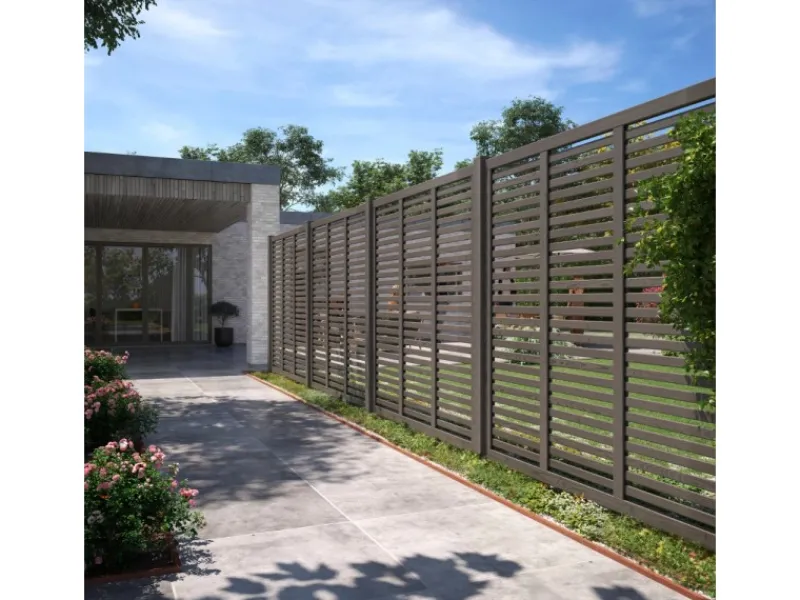 Bringen Sie Harmonie in Ihren Außenbereich mit diesem schönen Staketenzaun aus FSC-zertifiziertem Holz. Die schmalen Leisten haben eine tarnende Wirkung und schränken die Sicht ein, ohne sie vollständig zu versperren. Gleichzeitig entsteht durch das Zusammenspiel von vertikalen und horizontalen Leisten ein schöner Blendeffekt, der an die beeindruckenden japanischen Faltwände erinnert. Der Zaun ist auf beiden Seiten identisch und eignet sich daher ideal als Sichtschutz, Raumteiler oder in einer Nachbarschaft, in der der Zaun von mehreren Seiten einsehbar ist.