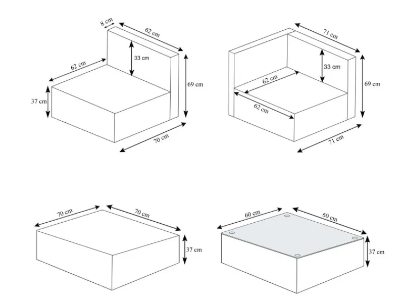 Eckteil: 69x71x71 cm