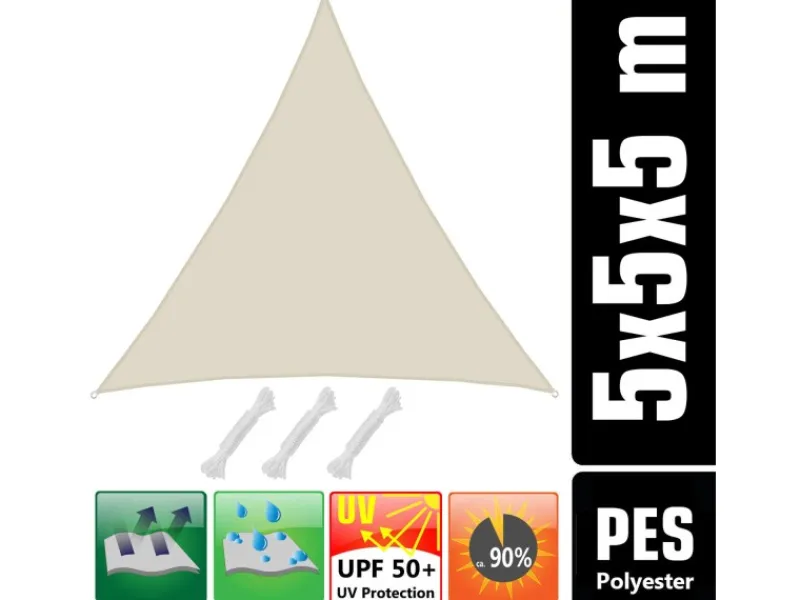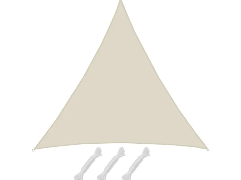 Sonnensegel mit eingenähtem Gurt, D-Ringen aus Edelstahl und 4 robusten PE Seilen.