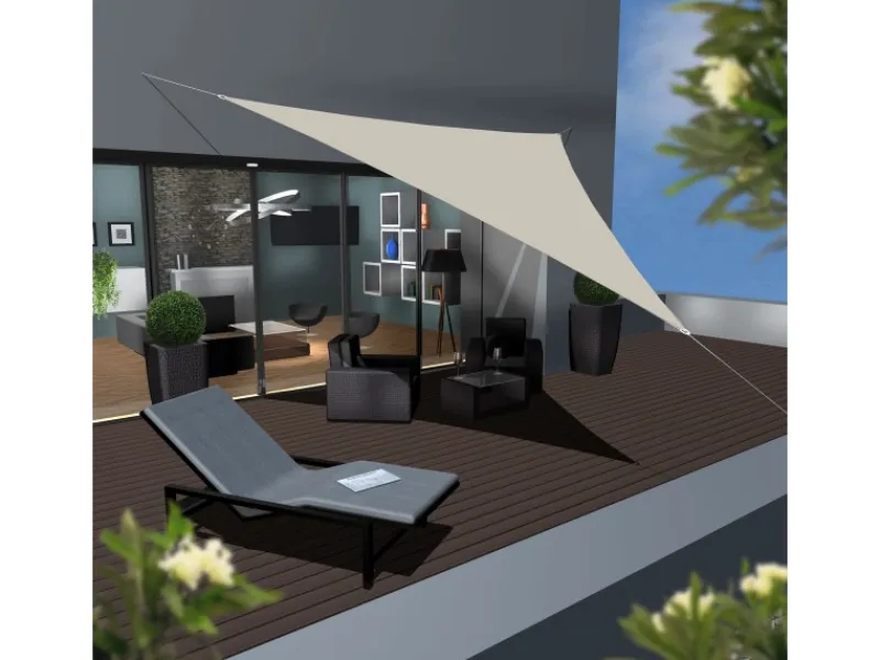 Wir empfehlen Dir, das Sonnensegel mit einer Neigung von 20° anzubringen – bei Regen könnten sich Wassersäcke bilden.