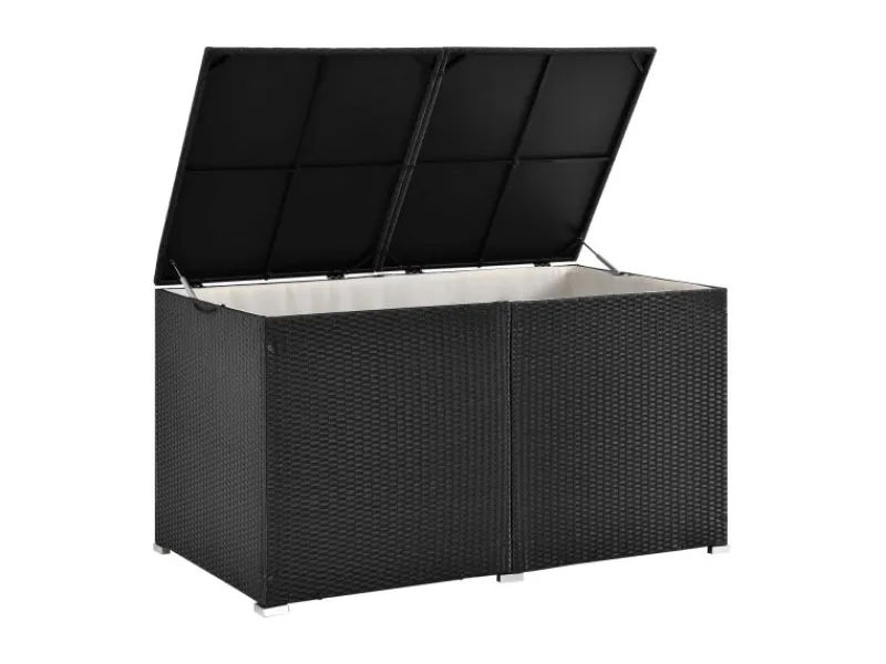 – Material Auflagenbox: Polyrattan, Stahl