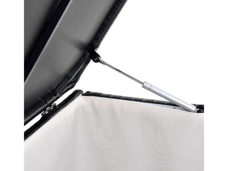 Als Gartenmöbel ist die praktische Kissenbox mit Klappdeckel verschließbar. Dadurch sind Gartenutensilien praktisch verstaut. Die Hubautomatik (2 x Dämpfer) am Deckel erlaubt ein sicheres Auf- und Zumachen der Kiste. Das bietet Sicherheit, damit der Deckel nicht ruckartig schließt.