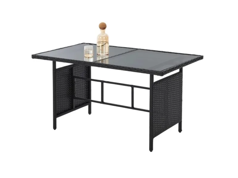 Die Tischplatte aus gehärtetem Glas verleiht dem Gartenmöbelset einen eleganten Look. Platzieren Sie hier Snacks und Getränke, während Sie die Sonne genießen.