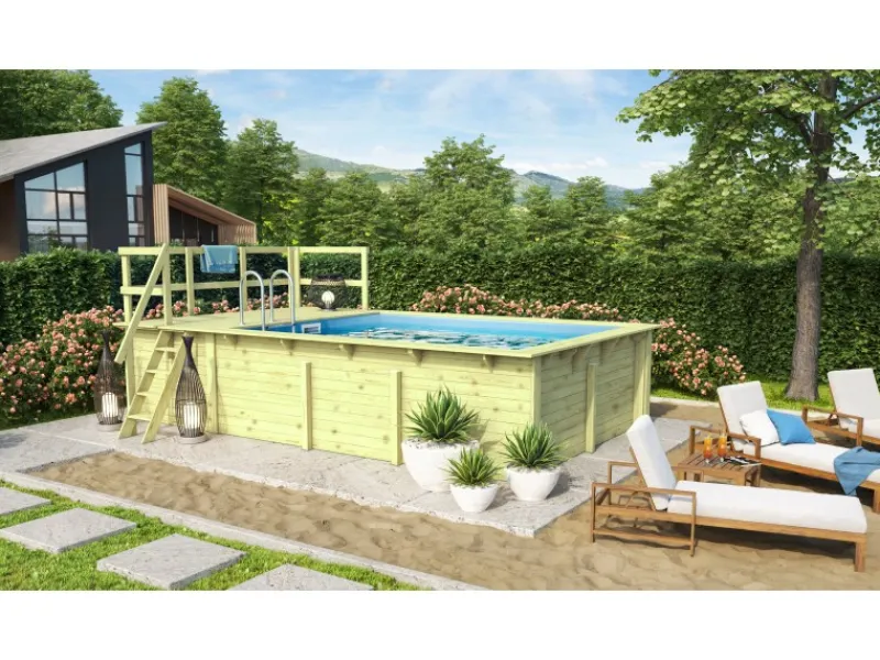 Rechteckiger Swimmingpool aus hochwertigem Holz