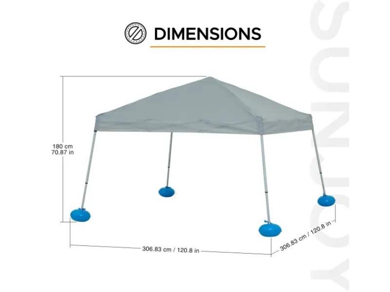 Mit verstellbaren Teleskopstangen können Sie die Höhe mühelos für maximalen Komfort anpassen. Die mit Wasser oder Sand befüllbaren, beschwerten PVC-Anker sorgen dafür, dass der Baldachin an Ort und Stelle bleibt, sodass Sie sich entspannen und den Schatten unbeschwert genießen können.