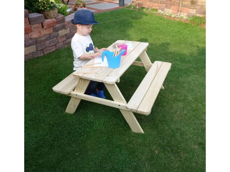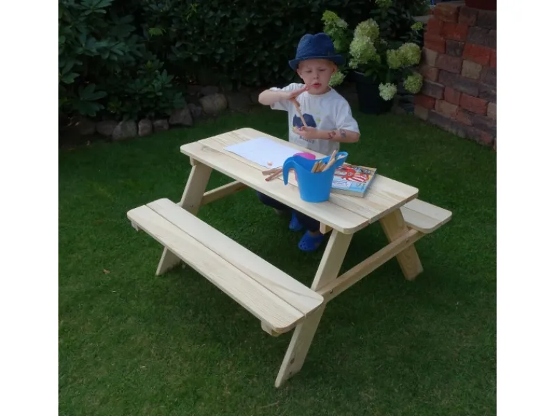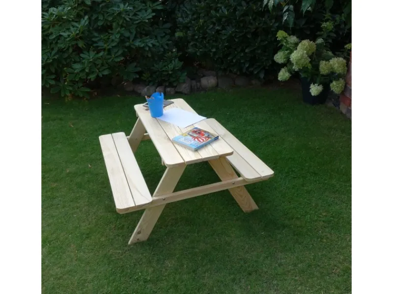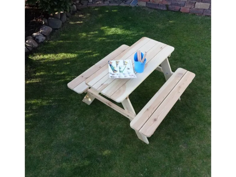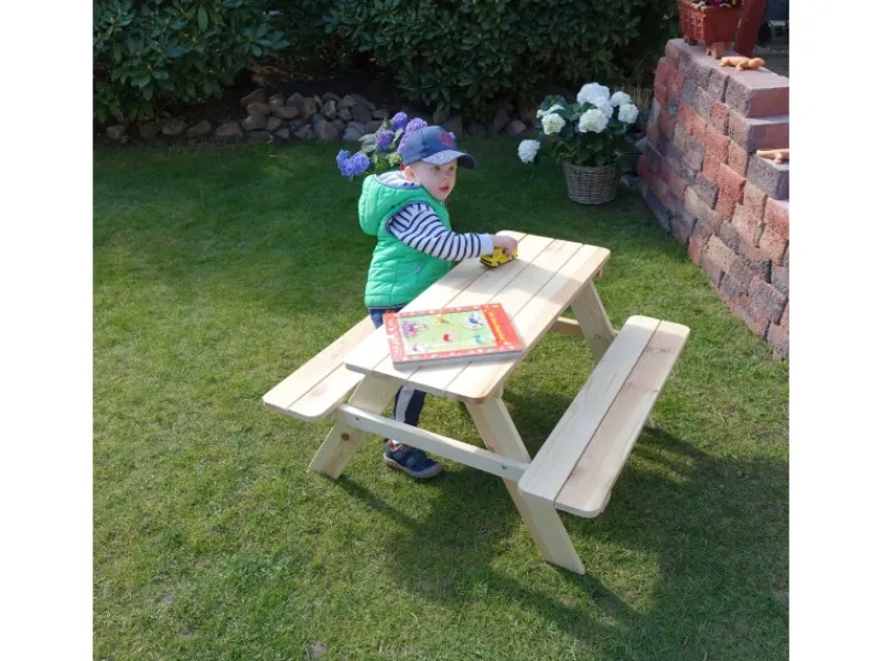 Die stabile Kinderbank aus massiver Kiefer ist eine klassischen Bierbank nachempfunden. Diese Bank ist ideal zum Spielen, Essen und Trinken, denn hier wackelt nichts! Die Limobank ist aus massiver Kiefer hergestellt und naturbelassen. Die Maße sind: Breite 90 cm x Tiefe 90 cm x Höhe 50 cm, Gewicht ohne Verpackung: 8,45 kg.