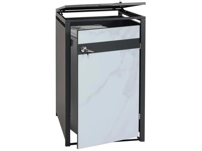 Diese Mülltonnenverkleidung überzeugt durch modernes Design, praktische Funktionen und hohe Sicherheit. Dank der Gasdruckfedern lassen sich die Deckel einfach öffnen, während die separate Abschließbarkeit der Türen und Deckel Deine Mülltonnen zuverlässig schützt. Die Belüftungsschlitze sorgen dafür, dass Kondenswasser vermieden wird, und die wetterfeste Pulverbeschichtung garantiert Langlebigkeit. Ideal, um Deinen Außenbereich sauber und ordentlich zu gestalten.