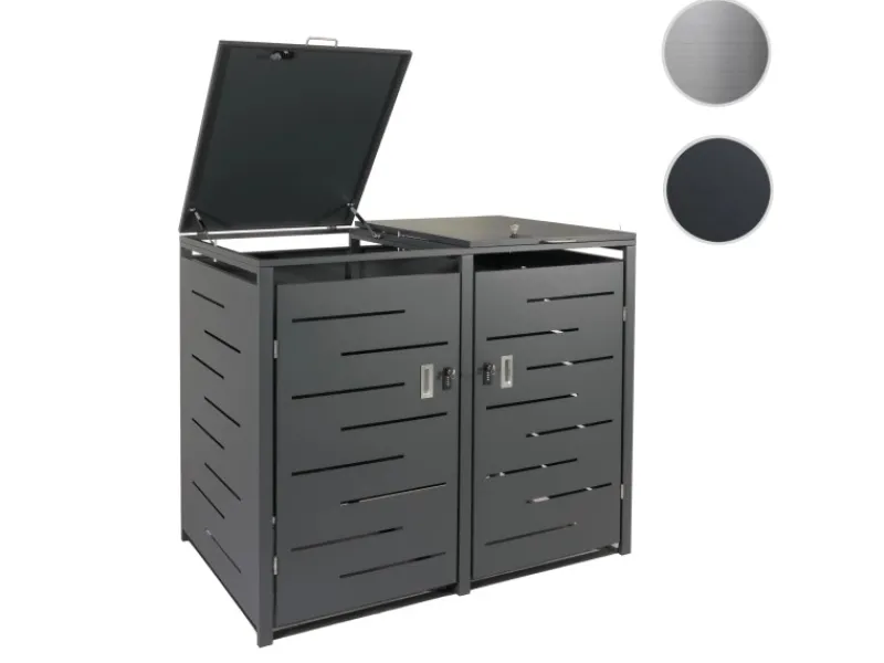 Diese Mülltonnenverkleidung verbindet modernes Design mit praktischen Funktionen. Durch die komfortable Aufhängung lässt sich die Mülltonne einfach befüllen, während der stabile Aufbau und die abschließbaren Elemente für Sicherheit und Ordnung sorgen. Die wetterbeständige Konstruktion macht sie ideal für den Außenbereich, und die Erweiterbarkeit ermöglicht eine flexible Nutzung nach Deinen Bedürfnissen.