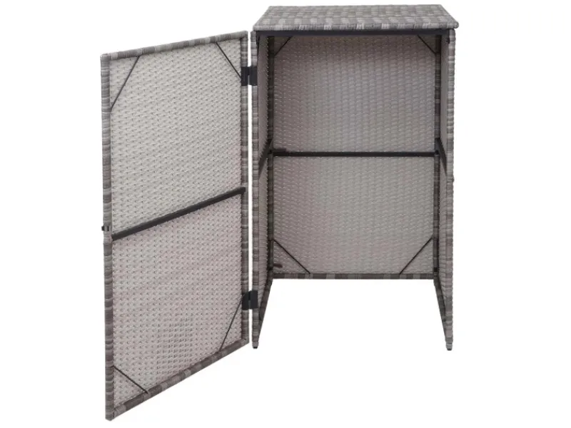 Die Mülltonnenbox überzeugt durch ihr durchdachtes Design und ihre hochwertige Verarbeitung. Der Klappdeckel bleibt dank Halterung sicher offen und erleichtert Dir das Befüllen der Tonnen. Das pflegeleichte Poly-Rattan verleiht der Box eine moderne Optik und ist gleichzeitig robust gegenüber Witterungseinflüssen. Eine clevere Lösung, um Ordnung und Stil in Deinen Garten, Hof oder Eingangsbereich zu bringen.