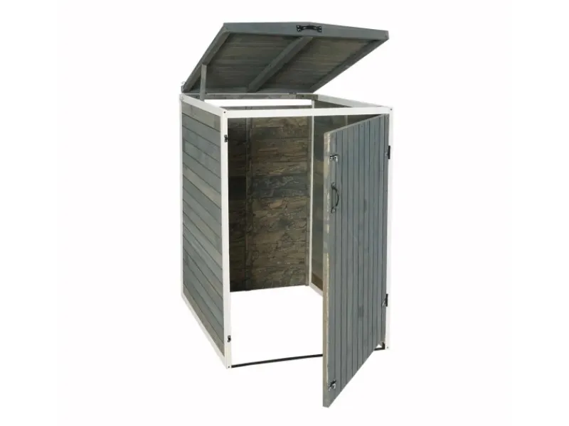 Die Holzverkleidung überzeugt durch ihre durchdachte Konstruktion und natürliche Ästhetik. Der Deckel mit Halterung bleibt beim Befüllen sicher geöffnet, während die abschließbaren Türen und robusten Metallbeschläge für Sicherheit sorgen. Dank der Belüftung ist stets für ausreichend Luftzirkulation gesorgt, und das modulare Design ermöglicht Dir, die Mülltonnenverkleidung flexibel zu erweitern – eine praktische und optisch ansprechende Lösung für Deinen Garten, Hof oder Eingangsbereich.