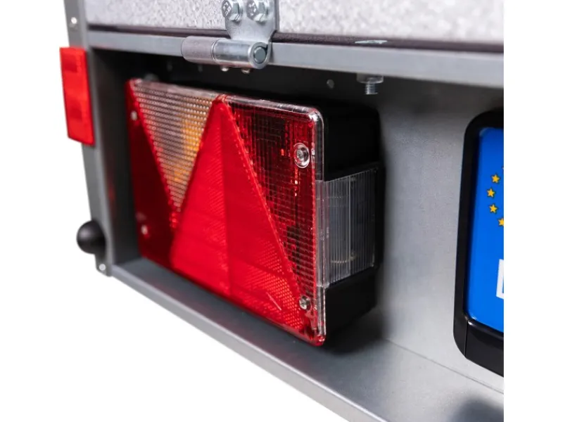 Der Autoanhänger ist mit Multifunktionsleuchten inkl. Nebelschlussleuchte und einem Rückfahrscheinwerfer ausgestattet. Dank der mit einer speziellen Galvalume-Beschichtung versehenen Bordwände und des feuerverzinkten Stahlgestells ist der Anhänger unemfpindlich gegenüber Witterungseinflüssen. Der Boden besteht aus wasserfest verleimtem Mehrschichtholz mit einer speziellen phenolharzbeschichteten Oberfläche, die rutschhemmend ist. Zur weiteren Sicherheit wird der Anhänger mit V-Deichseln ausgestattet.
