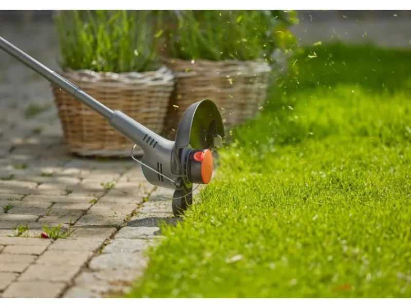 Der akkubetriebene Trimmer ist leicht und wendig und lässt sich selbst in großen Gärten mühelos und bequem transportieren.