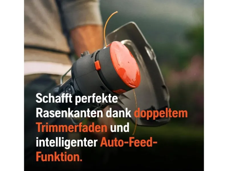 Der 18V-Akku-Trimmer & zwei Trimmerfäden sorgen für perfekte Kanten & hohe Effizienz im Garten