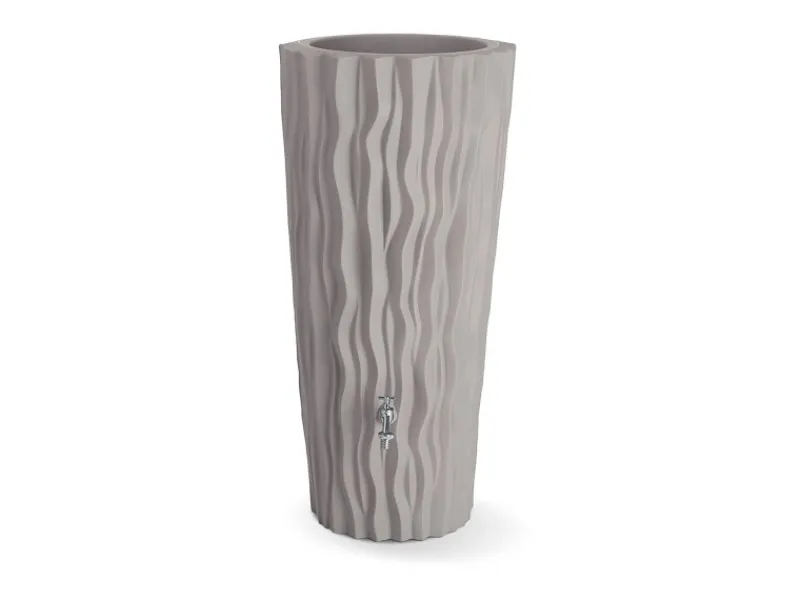 Der Regenspeicher Alana hat ein Fassungsvolumen von max. 160 Litern und verfügt über einen 3/4″ Anschluss an der Vorderseite, in den ein Wasserhahn eingeschraubt werden kann. Inklusive einer seitlichen Auslauföffnung zur vollständigen Entleerung des Regenspeichers vor der Frostperiode oder für das Verbinden von zwei Speichern. Der Regenspeicher Alana besteht aus witterungs- und UV-beständigem PE-Kunststoff.
