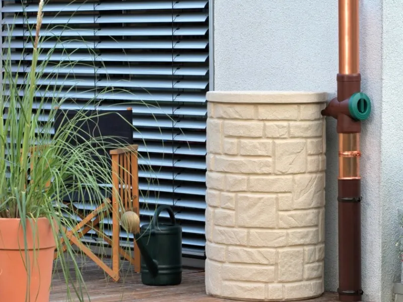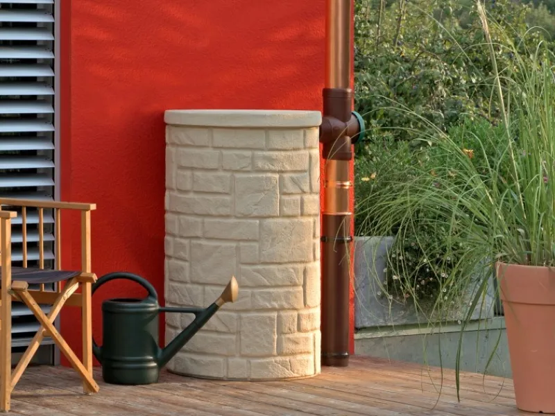 Dieser Regenspeicher kann optional auch bepflanzt werden und passt sich dadurch harmonisch jeder Jahreszeit an.