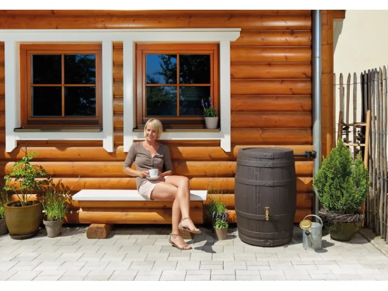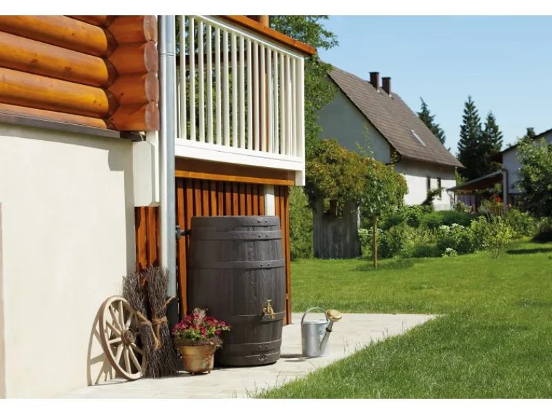 Regentonne in rustikaler Holzfassoptik mit 260 l Wasserspeicher