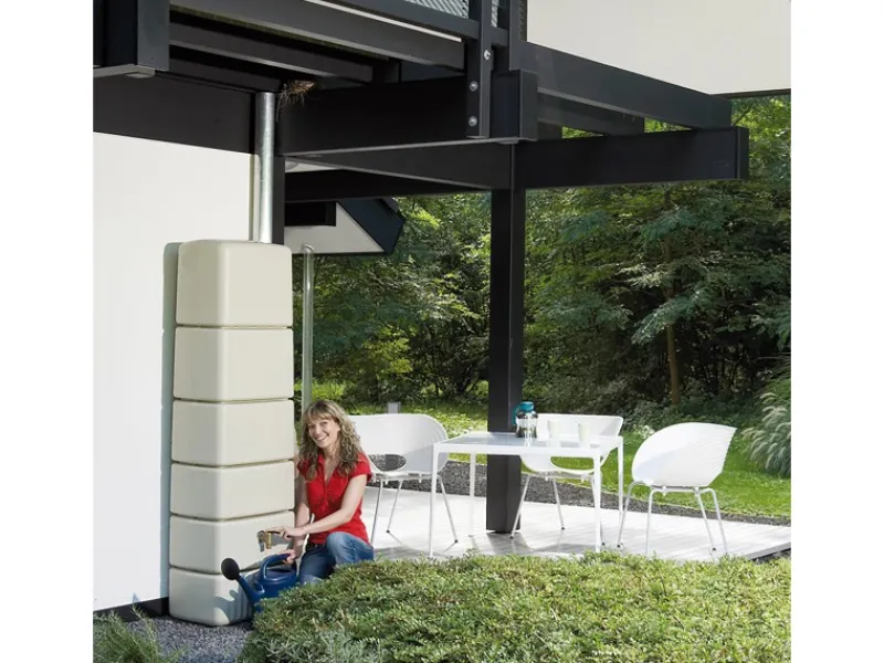 Wandtank mit 650 l Volumen zum Auffangen von Regenwasser aus der Rinne