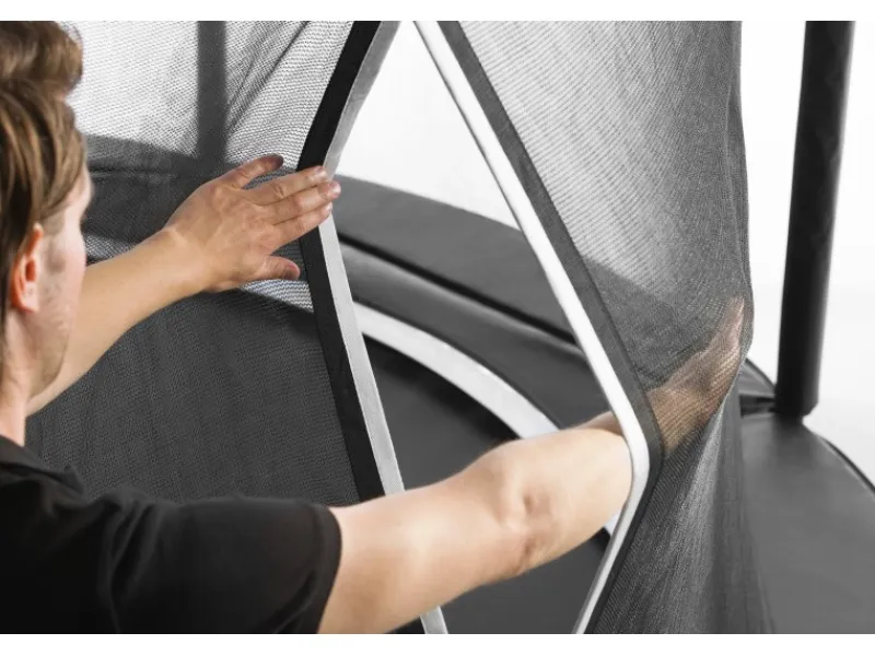 Das Sicherheitsnetz ist einfach zu montieren, auch nachdem Sie bereits das Salta Royal Baseground aufgebaut und in den Gartenboden integriert haben.