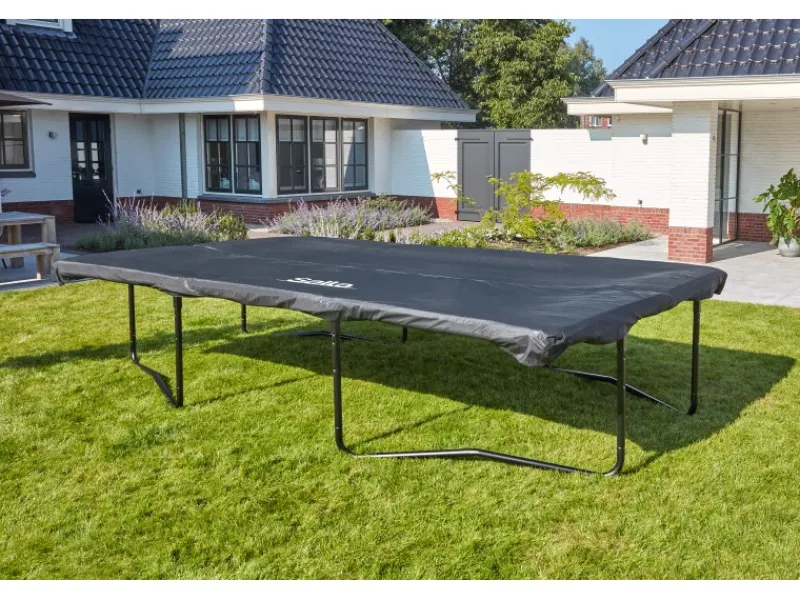 Die Salta Abdeckplane sorgt auch dafür, dass sich der Schutzrand des Trampolins nicht mit Wasser vollsaugt. Die Entwässerungslöcher in der Abdeckplane leiten das Wasser in die Mitte des Trampolins und lassen das Wasser durch das Sprungtuch ablaufen. Auf diese Weise bildet sich auf dem Trampolin keine Wasserpfütze.