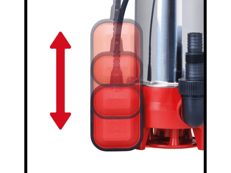 Der Schwimmerschalter der Pumpe ist stufenlos regelbar, ermöglicht den Dauerbetrieb oder die Einstellung auf einen spezifischen Ein- und Ausschaltpegel.