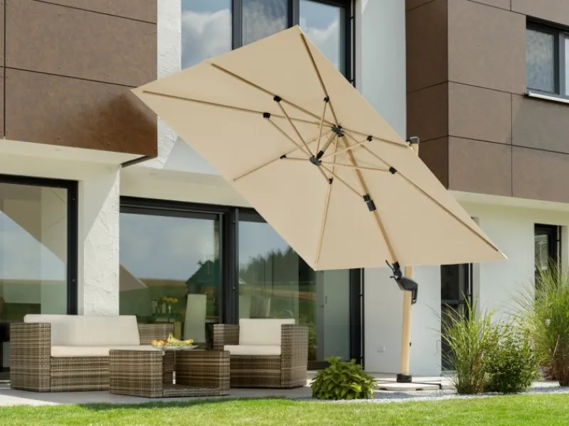 Quadratischer Sonnenschirm mit Dreh- & Neigungsfunktion