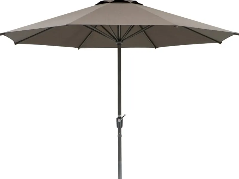 Die Kurbelmechanik ermöglicht dir ein bequemes Öffnen und Schließen des Marktschirmes. Aufgespannt besitzt er einen Ø von 320 cm. Die Höhe des Sonnenschirms beträgt maximal 250 cm.