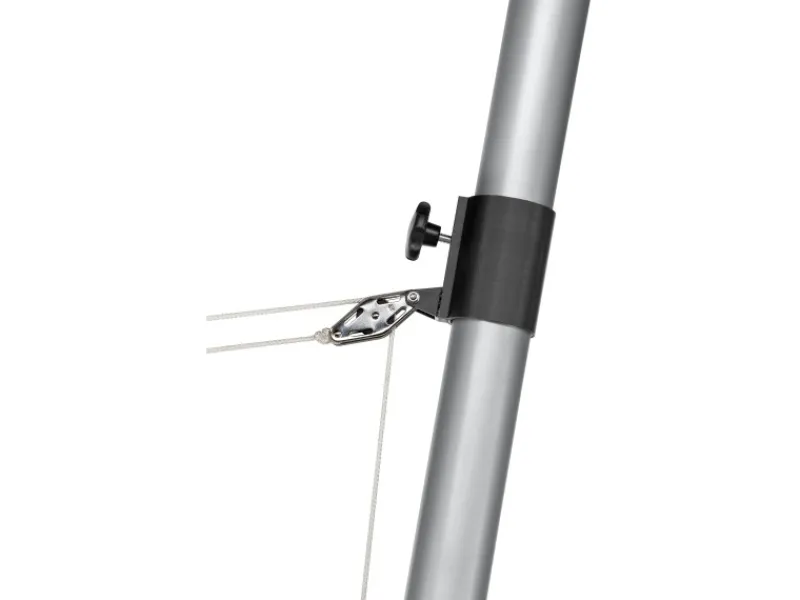 Der Mast wird inkl. Flaschenzug mit 5 m Befestigungsseil und Karabinerhaken geliefert. Zusätzlich im Lieferumfang enthalten ist eine Seilklemme und Klampe passend auf unsere Universal-Bodenplatte zum Einbetonieren oder den Universal-Bodenanker zum Eingraben, sodass Sie den Mast sicher im Erdreich befestigen können.
