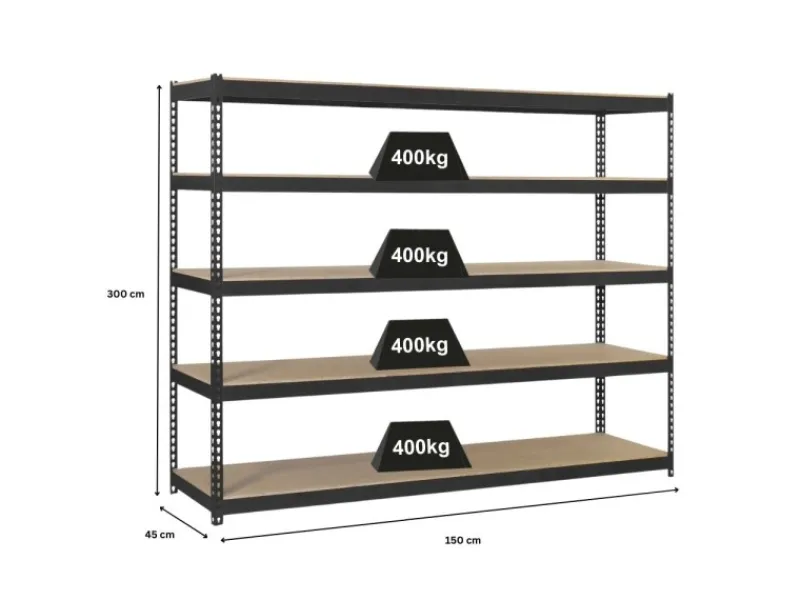 Schwerlastregal Extrem Wood Yeti Five HxBxT 300 x 150 x 45 cm Fachlast 400 kg Anthrazit*PROREGAL Best