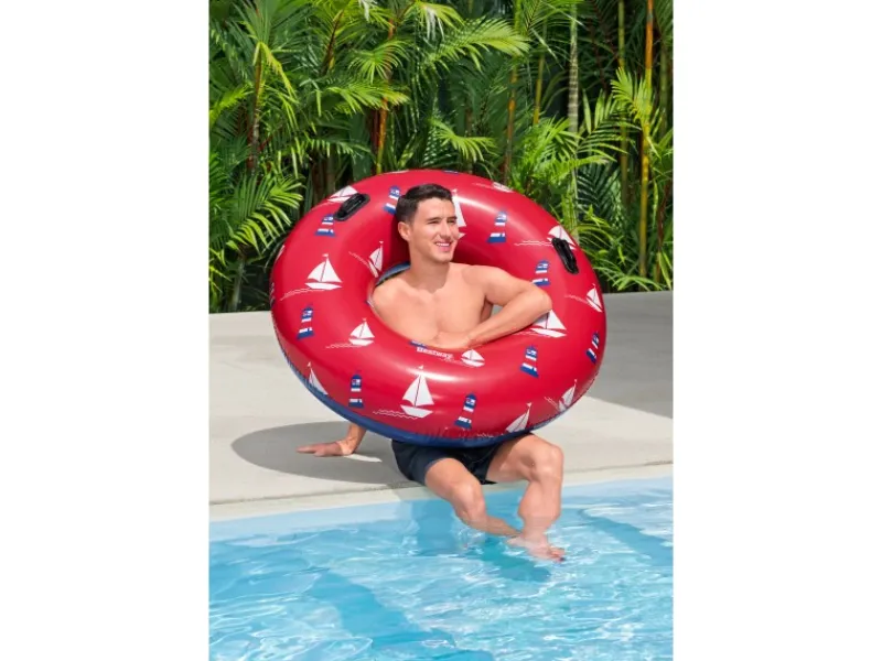 Die robusten Haltegriffe erleichtern das Ein- und Aussteigen enorm und sorgen für zusätzliche Sicherheit im Wasser. Der Schwimmring hat ein praktisches Design und lässt sich leicht aufblasen, entleeren und aufbewahren, damit der Spaß in der Sonne auch in den kommenden Jahren weitergehen kann. Freuen Sie sich auf unbeschwerte Stunden im Wasser mit diesem strapazierfähigen und ansprechenden Schwimmring.