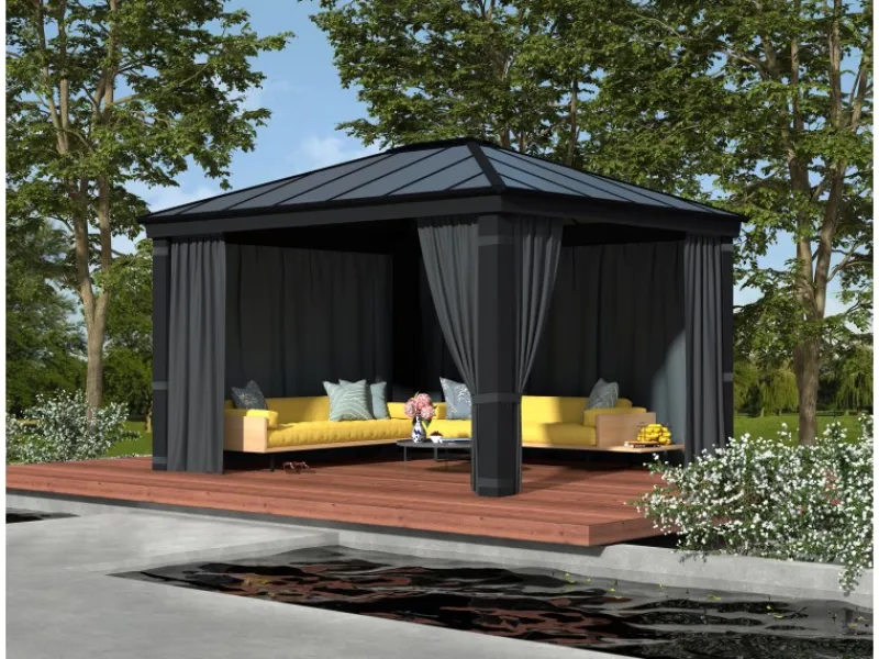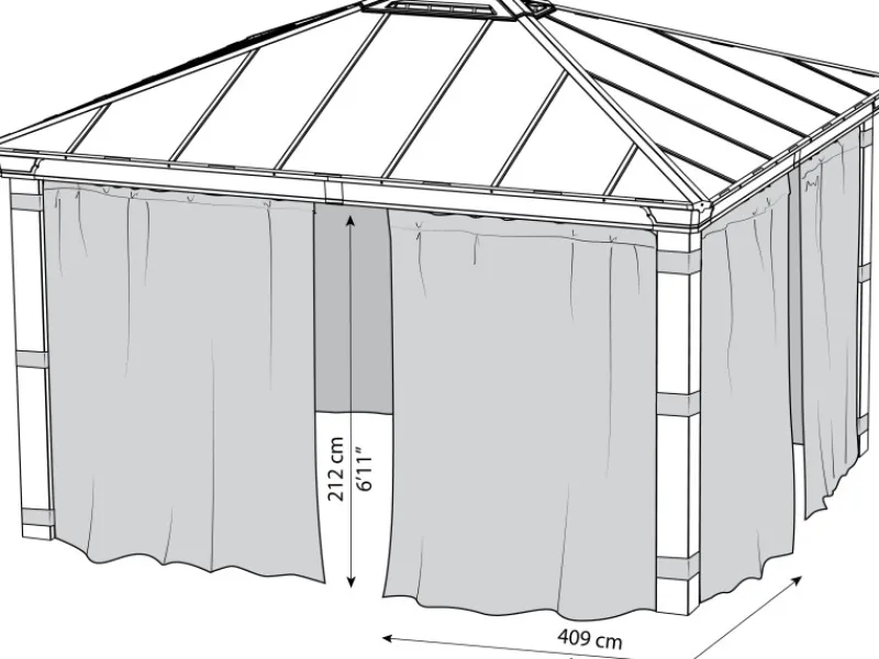 – einfach zu befestigende versteckte Haken – Freilaufend auf der Schienenkonstruktion des Pavillons