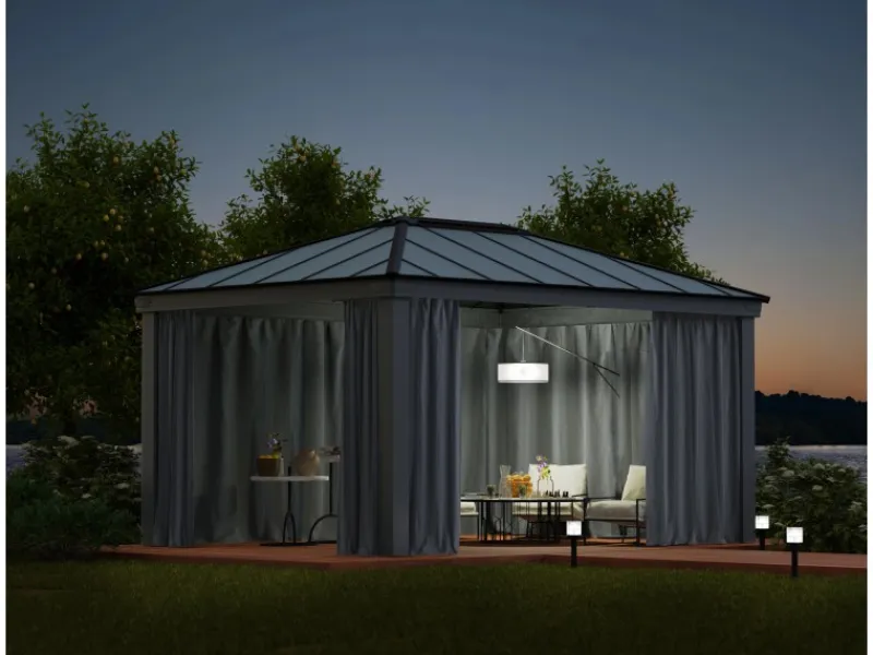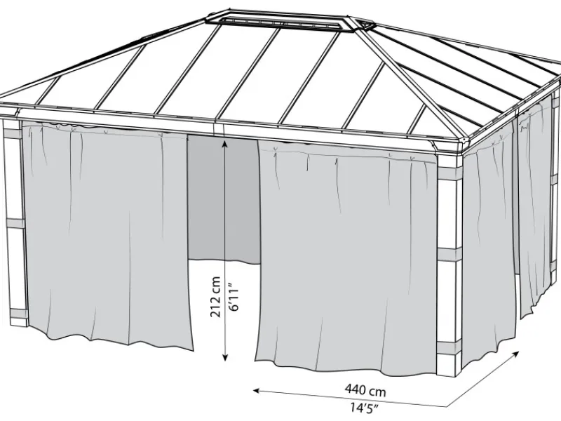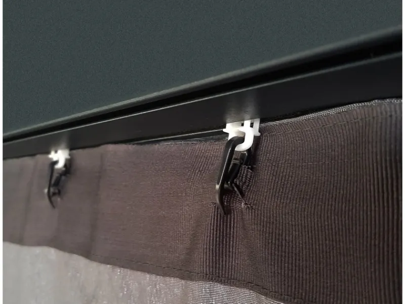 – einfach zu befestigende versteckte Haken – Freilaufend auf der Schienenkonstruktion des Pavillons