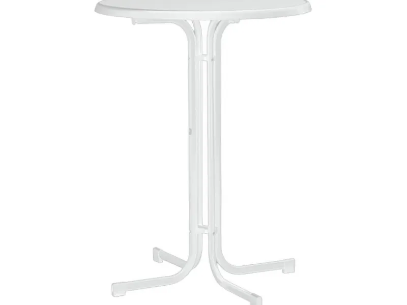 Durch die praktische Klappfunktion kann der Tisch ganz einfach zusammengeklappt werden. In wenigen Handgriffen ist er somit auf- oder abgebaut und stets einsatzfähig. Durch das robuste Gestell aus Stahl kann der Tisch einfach im Außenbereich aufgestellt werden.