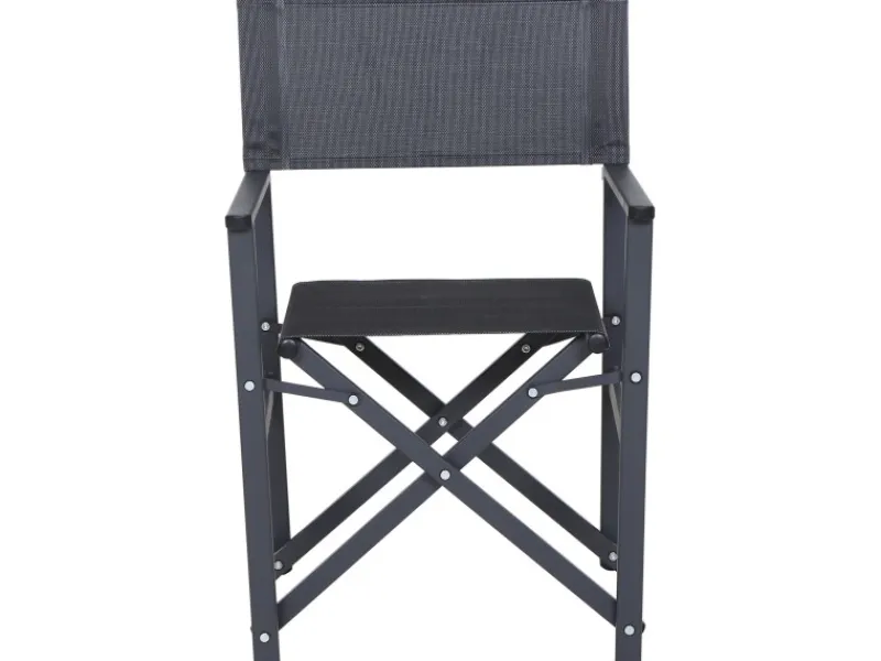Das Gestell ist aus Aluminium und pulverbeschichtet. Die Flächen sind aus Ranotex®-Gewebe, 2*1. Die Armlehnen sind aus Aluminium. Der Regiesessel hat die Maße von ca. L: 53 cm x B: 56 cm x H: 85,5 cm. Das Material ist witterungsbeständig und pflegeleicht. Der Sessel ist klappbar.