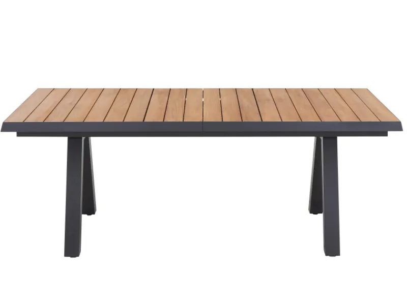 Mit einem Gestell aus Aluminium verleiht der Tisch eine rustikal Optik. Die Tischplatte aus Holz rundet das Gesamtbild ab. Durch sein modernes Aussehen wirkt der Tisch besonders ansprechend und gibt deinem Outdoor-Bereich das spezielle Etwas. Durch das robuste Gestell aus Aluminium kann der Tisch einfach im Außenbereich aufgestellt werden.