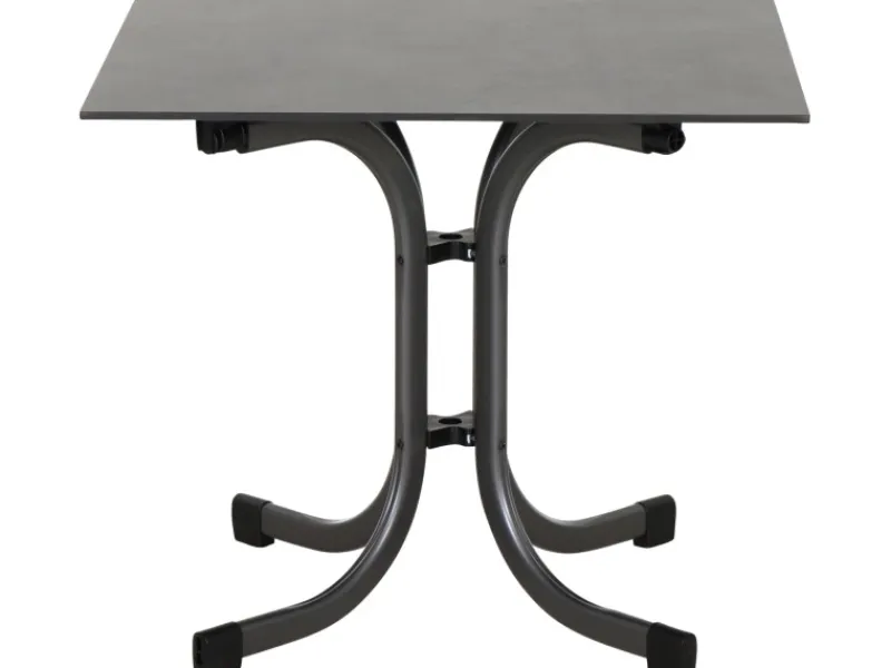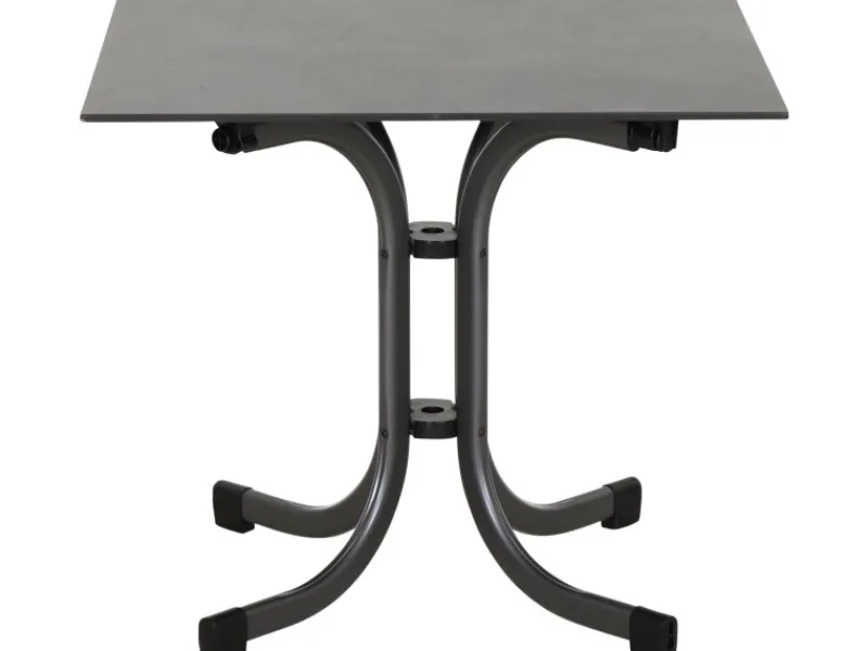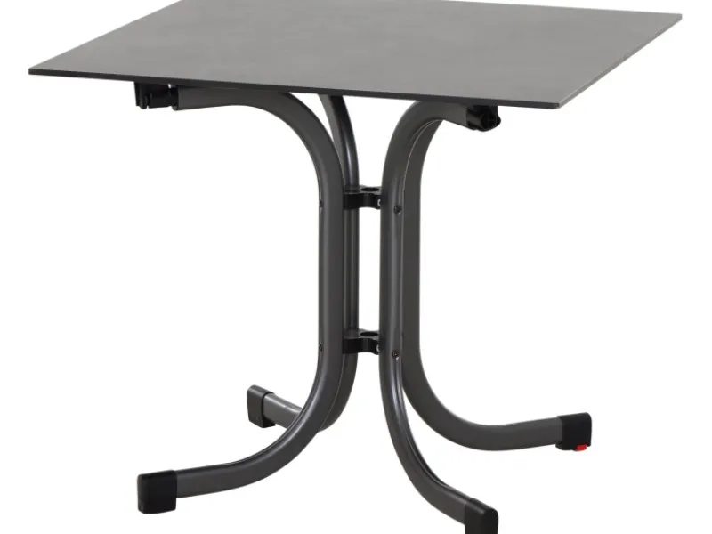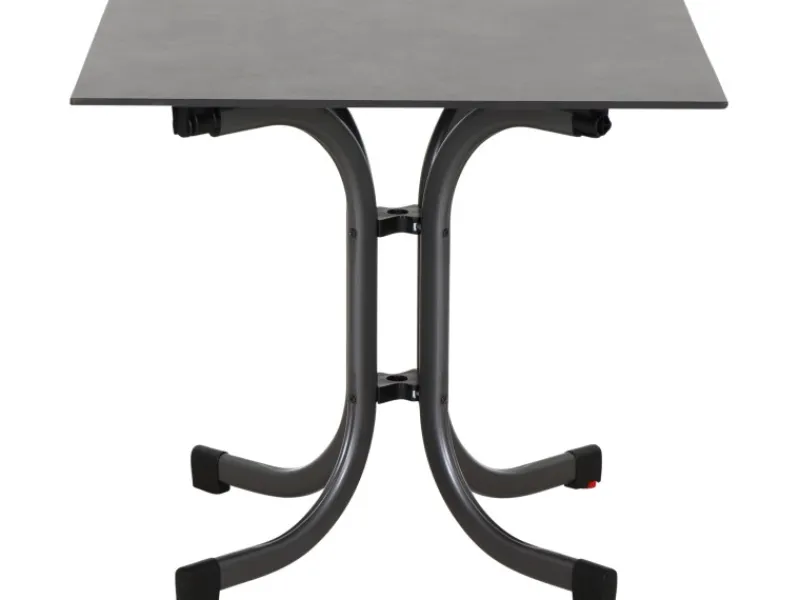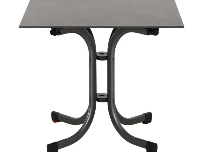 Der Tisch lässt sich zusammenklappen und somit platzsparend verstauen. Im Handumdrehen kann er einfach auf- und abgebaut werden und ist immer dann einsatzbereit, wenn du ihn brauchst. Durch das robuste Gestell aus Pulverbeschichteter Stahl kann der Tisch einfach im Außenbereich aufgestellt werden.