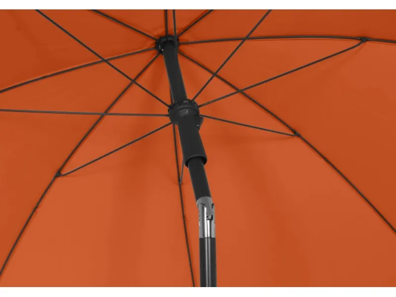 Mittels des Schiebers lässt sich der Schirm bequem öffnen und schließen. Aufgespannt besitzt er einen Ø von 180 cm. Um den Schirm auch bei niedrigem Sonnenstand morgens und abends perfekt für einen idealen Schattenplatz ausrichten zu können, lässt er sich am Mast abknicken bzw. neigen. Die maximale Höhe des Sonnenschirms beträgt 200 cm.