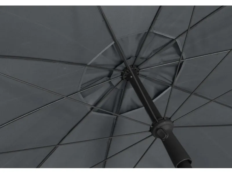 In der Verarbeitung und Materialauswahl weiß der Schirm durch Mast und Streben aus stabilem und langlebigem Stahl zu überzeugen. Die strapazierfähige Bespannung aus 100 % Polyester-Gewebe (180 g/m²) ist robust, abnehm- und waschbar und zeichnet sich zudem durch eine ziemlich gute Lichtechtheit aus, wodurch das Material auch bei starker Sonneneinstrahlung über die Zeit nur wenig ausbleicht. Mit dem Lichtschutzfaktor des Schirms von UV 50+ kannst du den Sommer unbeschwert genießen.