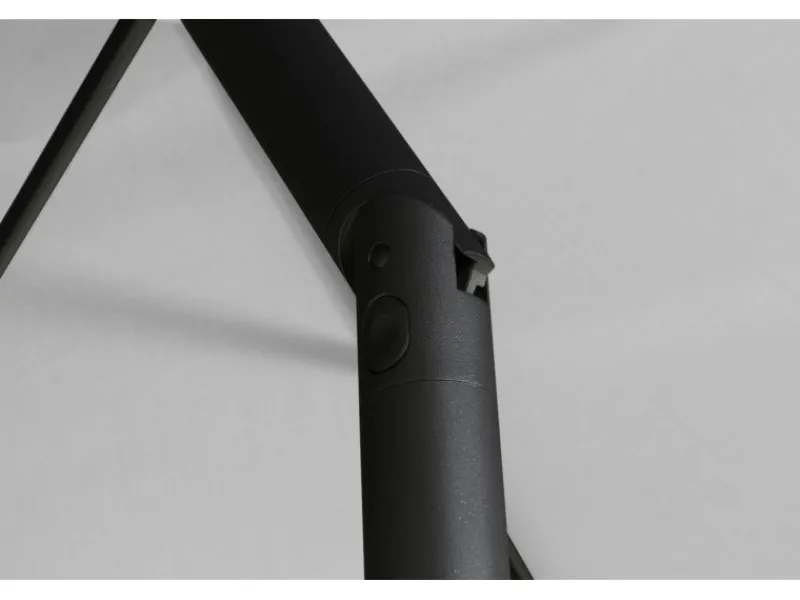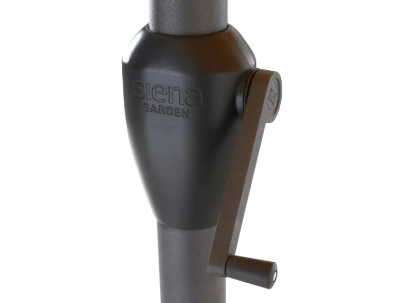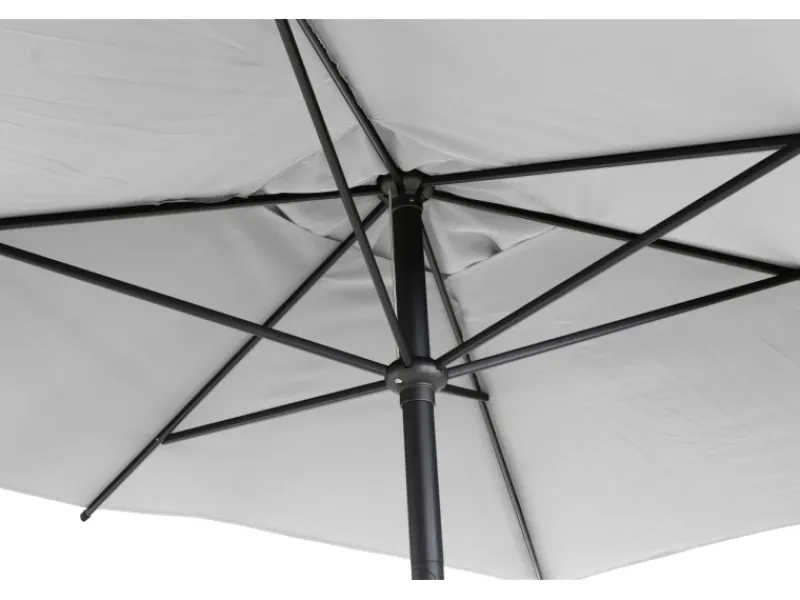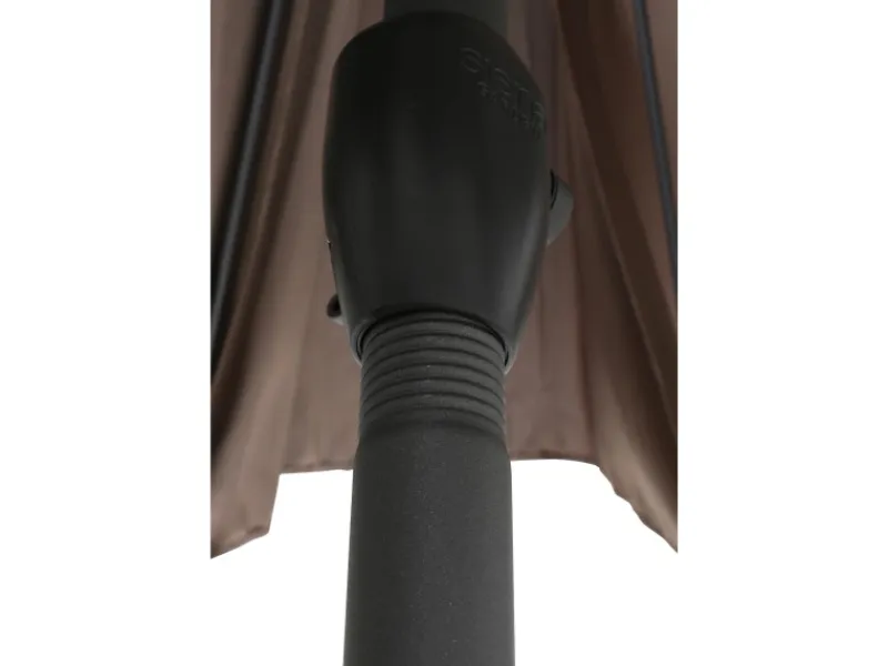 Um den Schirm bequem öffnen und schließen zu können, besitzt er eine Kurbelmechanik. Aufgespannt besitzt er einen Ø von 300 cm. Die maximale Höhe des Sonnenschirms beträgt 238 cm.