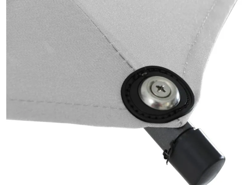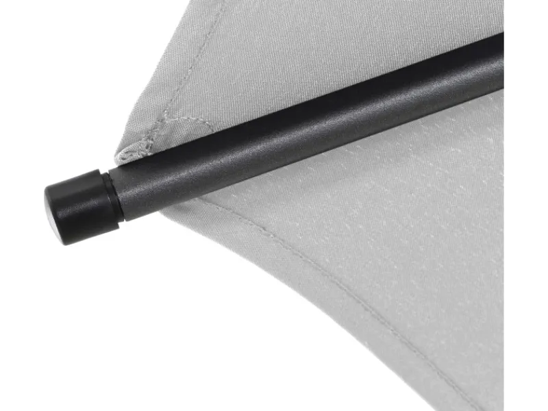 Der Mast und die Streben des Schirms sind aus leichtem, aber stabilem Aluminium gefertigt und exzellent verarbeitet. Dank des Mastdurchmessers von 48 mm hält er auch widrigsten Witterungsbedingungen problemlos stand. Die widerstandsfähige Bespannung aus 100 % Polyester-Gewebe (180 g/m²) ist robust, abnehm- und waschbar. Außerdem zeichnet sie sich durch eine ziemlich gute Lichtechtheit aus, was bedeutet, dass das Material auch bei starker Sonneneinstrahlung über die Zeit nur wenig ausbleicht. Dank des Lichtschutzfaktors von UV 50+ kannst du den Sommer unbeschwert genießen.
