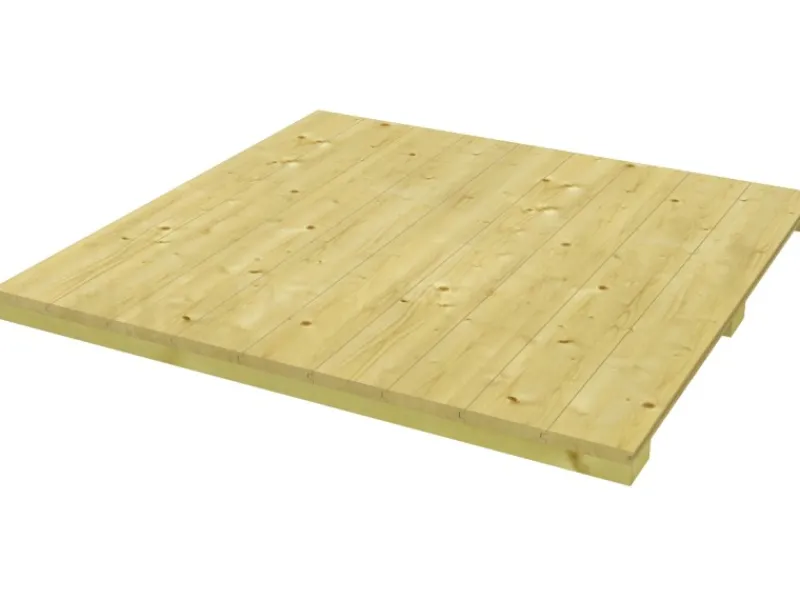 Der Skan Holz Fußboden ist aus 19 mm starken Nut- und Federbrettern aus unbehandelter Fichte gefertigt und ist passend für alle Skan Holz CrossCube Häuser der Größe 2, 253 cm x 169 cm.