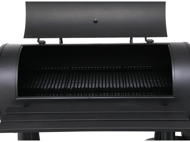 Das Grillgut kann traditionell über der Glut gegart werden oder durch die Abluft eines Holzfeuers. Dies wird durch die spezielle Bauform ermöglicht. Im kleineren Feuerraum entsteht durch die Verbrennung von Holz Rauch, welches aufsteigt und in die größere Garkammer zieht. Der Weg des Rauches wird dank des Kaminabzuges unterstützt. Die Intensität des Rauchs können Sie über die Belüftungsklappe variieren. Auf dem praktischen Deckelthermometer haben Sie die Temperatur zudem jederzeit im Blick. Das sogenannte Räuchern ist eine besonders gesunde Zubereitung des Grillguts, da keine Fette oder Flüssigkeiten in die Flamme tropfen und so keinerlei gesundheitsschädliche Stoffe gebildet werden.