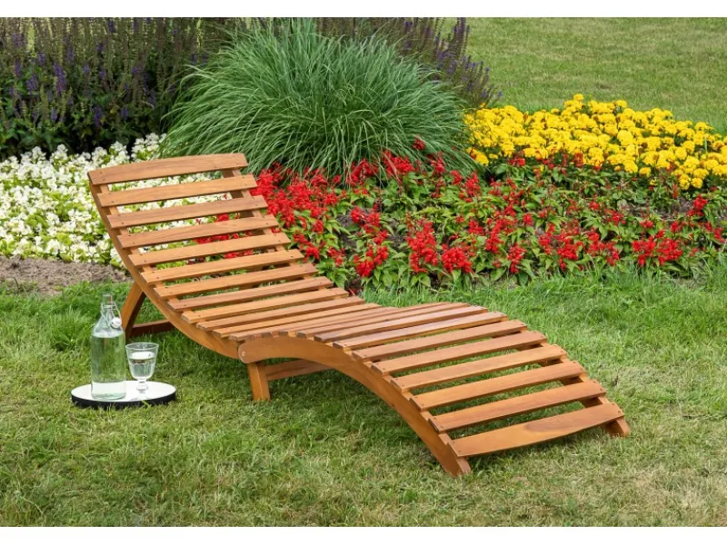 Die Merxx Sonnenliege Honopu überzeugt durch ihre elegant geschwungene Optik. Der Sitzkomfort der Formliege wird durch das Wendekissen, das mehrfach abgesteppt ist, erhöht. Zum einfachen Transport lässt sich die Liege zusammenklappen und arretieren. Der Griff erleichtert Ihnen den Transport. Die Liege ist aus geöltem Akazienholz gefertigt. Für eine bessere Haltbarkeit sind die Schrauben galvanisiert.