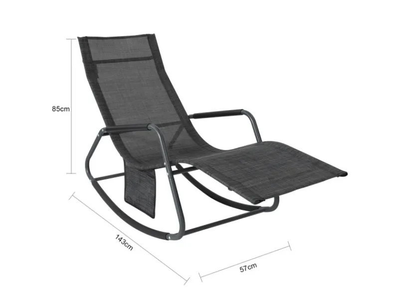 Die bequeme Liegefläche aus Kunstfasergewebe lädt ausgiebigen Relaxen ein, während Gummiüberzüge den Rahmen zu einer angenehmen Armablage verwandeln