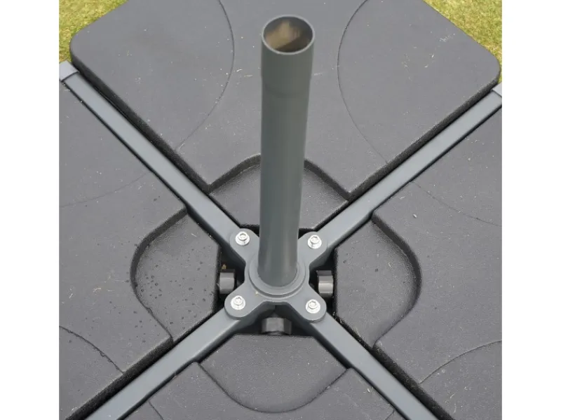 Berechnungen wie 1 kg je 10 cm Durchmesser sind sicherlich nicht korrekt, da diese nicht berücksichtigen, dass die Schirmfläche sich potenziert. Darüber hinaus ist auch die Fläche eines Schirmständers sowie die Schirmhöhe wichtig.