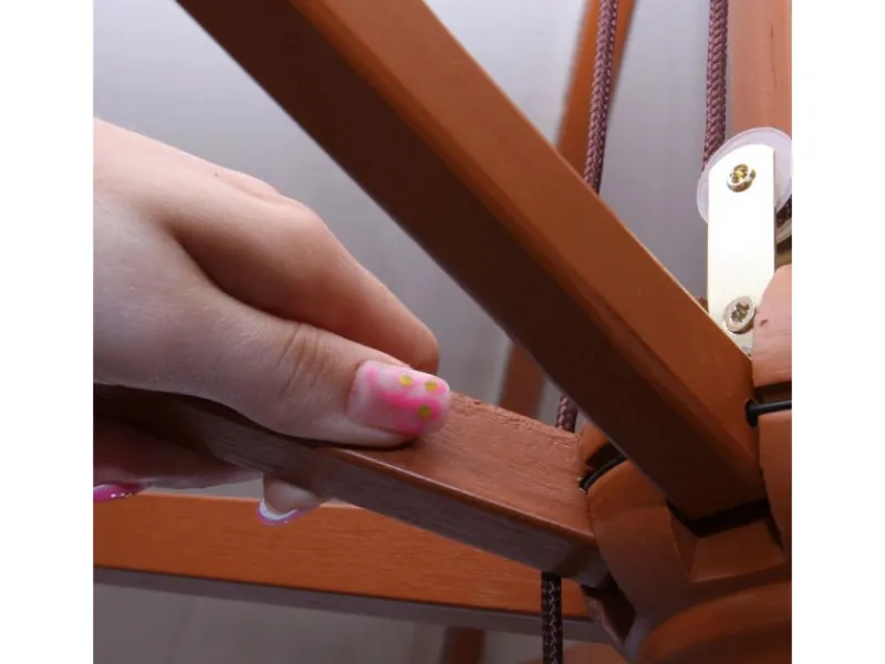 Der Schirm muss sich leicht entfalten lassen. KEINE Gewalt oder Kraft anwenden. Es besteht die Gefahr, dass die Holzstreben sich verkeilt haben. In diesem Fall bitte vor dem Öffnen unter den Schirm greifen und die Holzstreben wieder korrekt anordnen. Im Anschluss lässt sich der Schirm leicht entfalten.