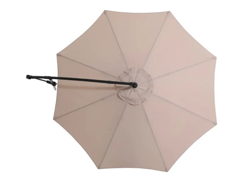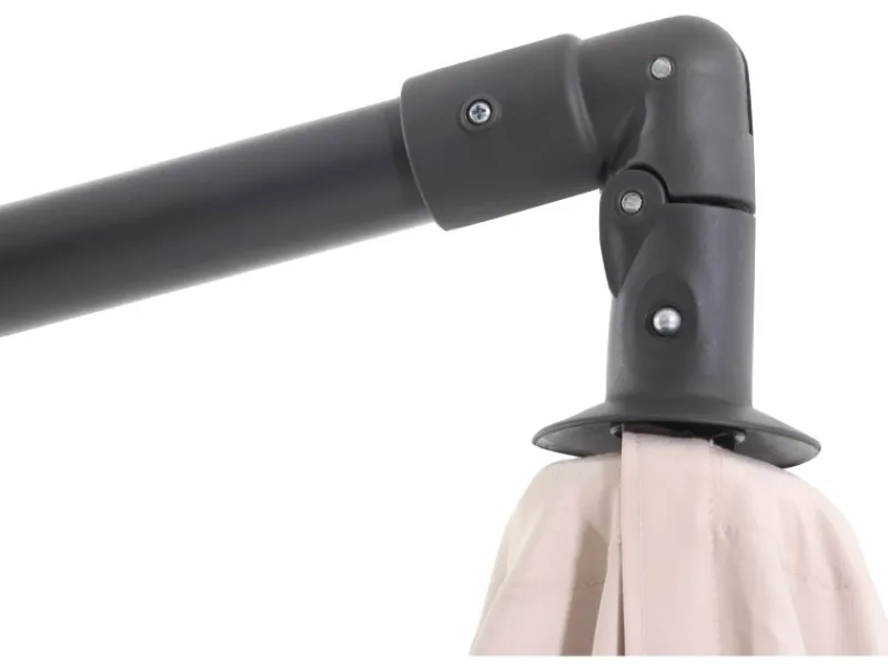 Bietet viel Schatten dank seitlichem Schirmmast und 300 cm Ø im aufgespannten Zustand