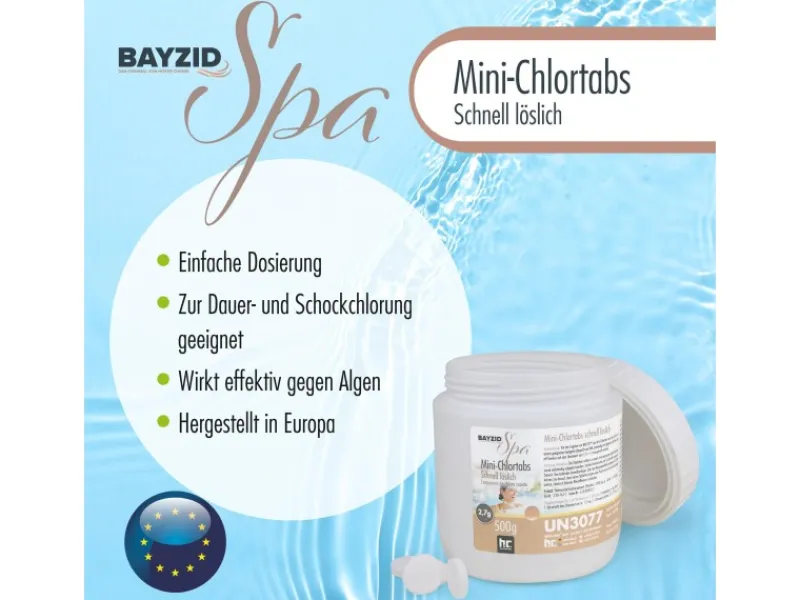 Schnell lösliche MINI Chlor-Tabletten BAYZID® in 500 g Dosen