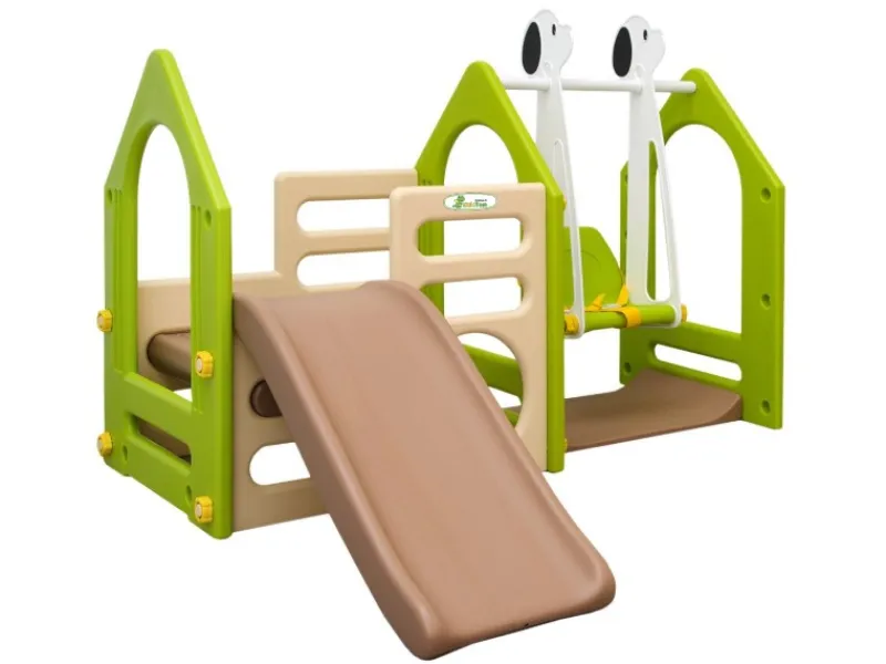 3-in-1 Baby Spielturm mit 92 cm langer Rutsche, Mini Klettergerüst und Schaukel mit Sicherheitsgurt