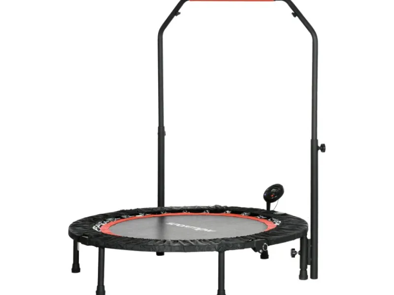 Unglaublich effektiv und einmalig kompakt: Dieses praktische Minitrampolin von SPORTNOW sorgt garantiert für ein schweißtreibendes, wirkungsvolles Workout und viele verbrannte Kalorien! Stärken Sie zudem Ihren Core, verbessern das Gleichgewicht und gewinnen fast spielend eine bessere Haltung. Das Trampolin besitzt einen stabilen Stahlrahmen, kann bis zu 100 kg tragen und ist mit einem praktischen, höhenverstellbarem Haltegriff ausgestattet. Die rutschfesten Gummifüße schützen zudem Ihren Boden.